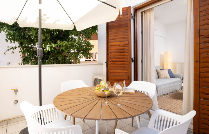 The apartment is located probably in the best spot on the island. The street that the apartment is on is quiet but it's close to the beach and many of the island's best restaurants. The nearby free municipal parking and bus stop means it's also the ideal base to explore the island.